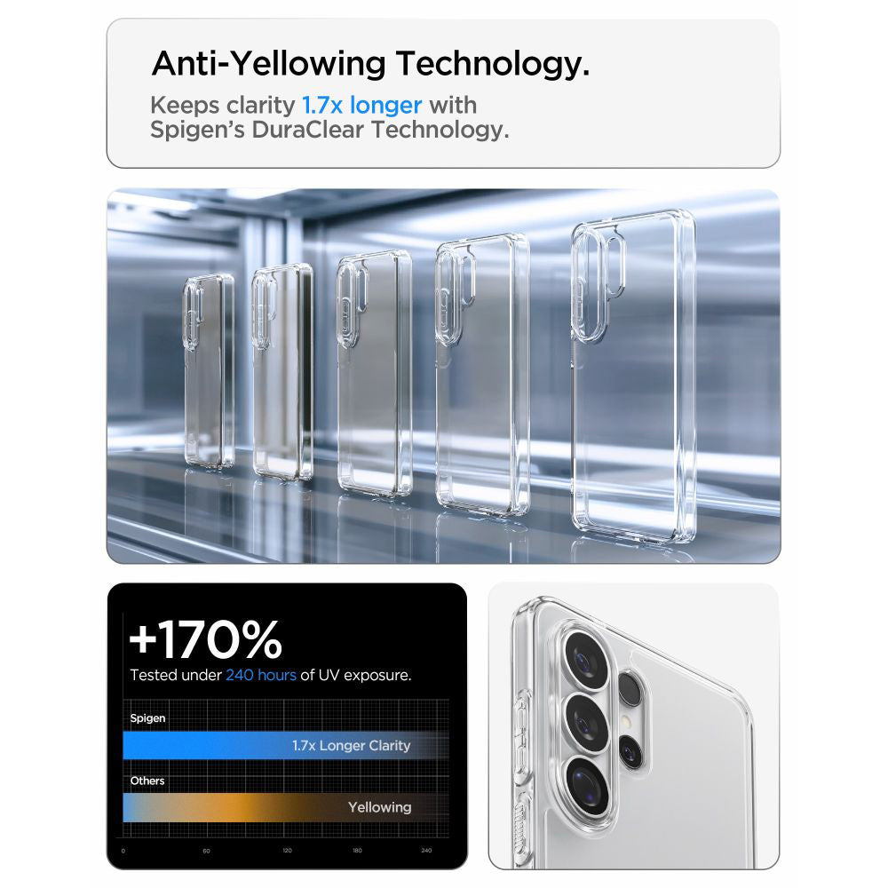 • The Ultra Hybrid case from Spigen offers long-lasting protection for your phone. The integrated silicone pads protect your device from impact, designed for shock dispersion.