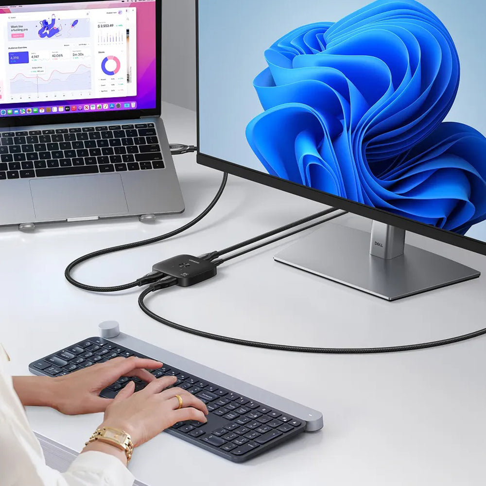 This Ugreen splitter allows you to connect 2 devices to a single monitor. It is ideal for professional presentations at a resolution of 8K@60Hz.