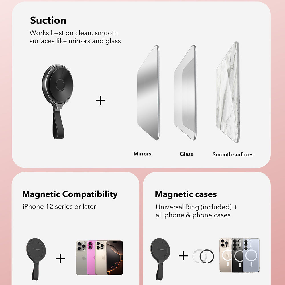 Har en kraftfull sugkopp som säkerställer en säker fastsättning på alla rena och släta ytor.