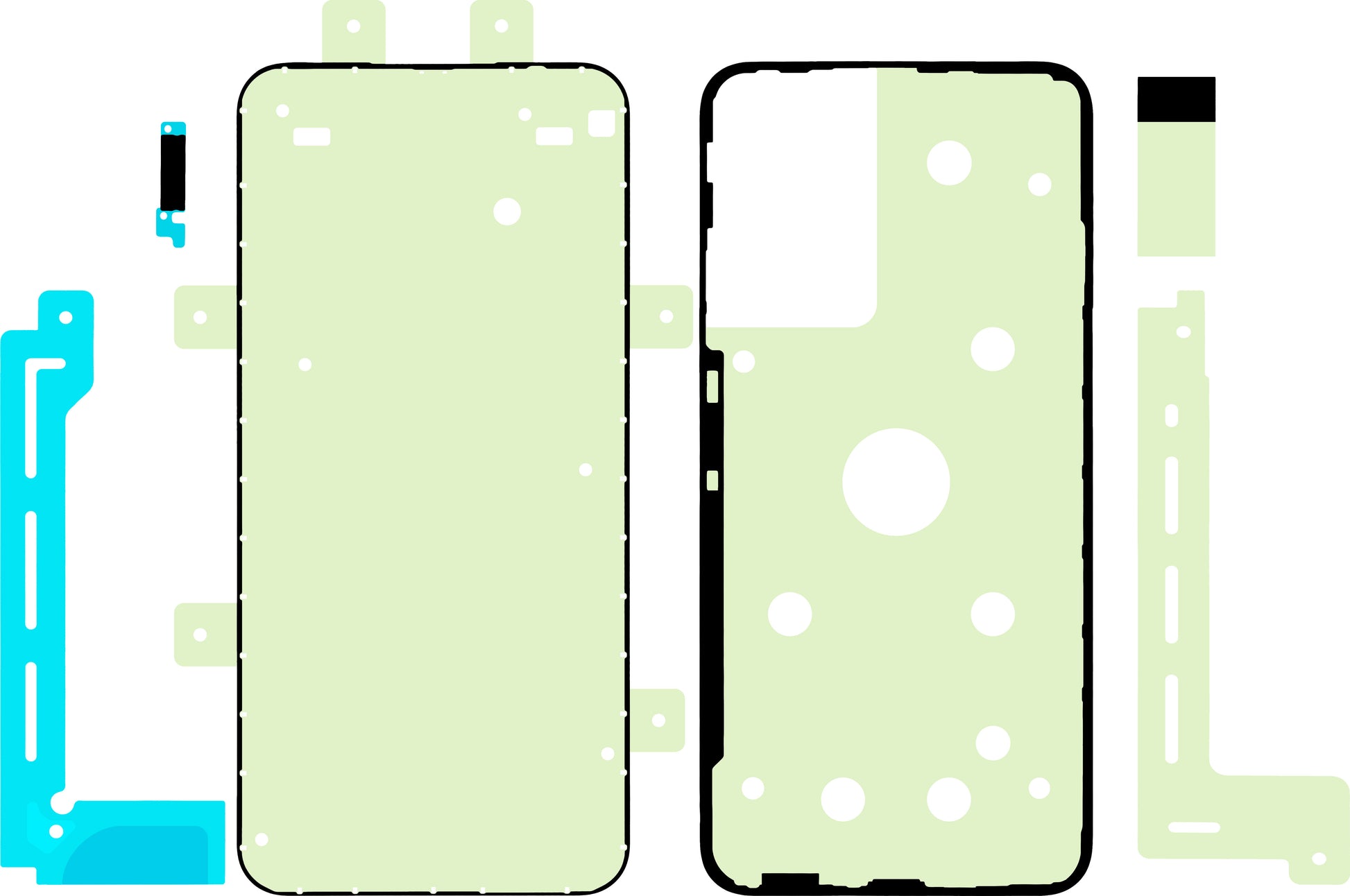 Lim avsedda för att fästa displayen på telefonens ram.
