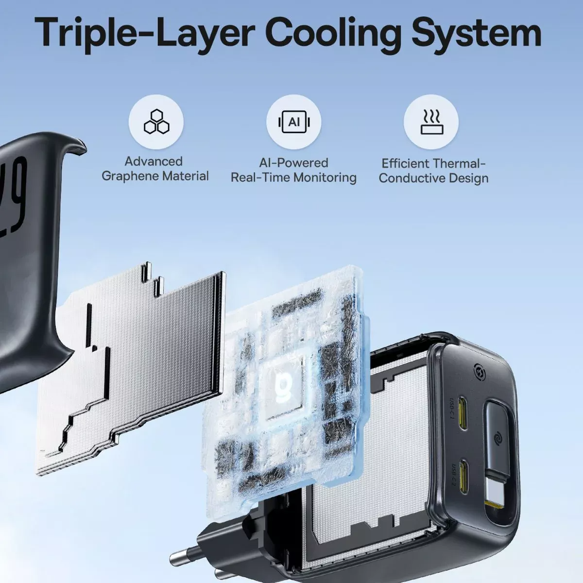 Utrustad med avancerad GaN6-teknologi, garanterar den hög prestanda och stabil drift, samtidigt som den håller en låg temperatur även under intensiv användning. Den har en integrerad infällbar USB-C-kabel och tre snabbladdningsportar, vilket möjliggör samtidig laddning av bärbara datorer, telefoner och andra kompatibla enheter. Den kompakta designen och de hållbara materialen gör den idealisk