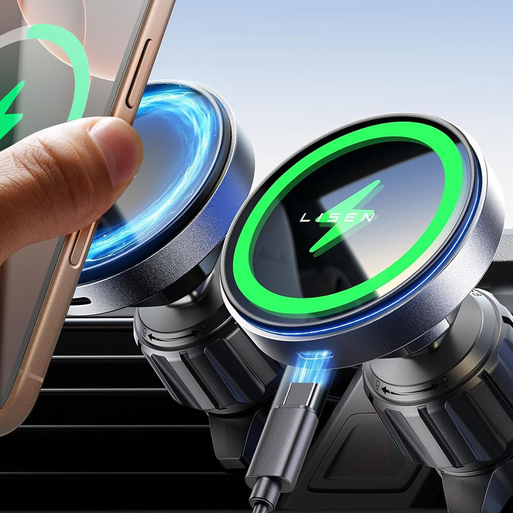 Hållaren erbjuder snabb trådlös laddning upp till 15W, lämplig för de flesta moderna Qi-kompatibla smartphones.