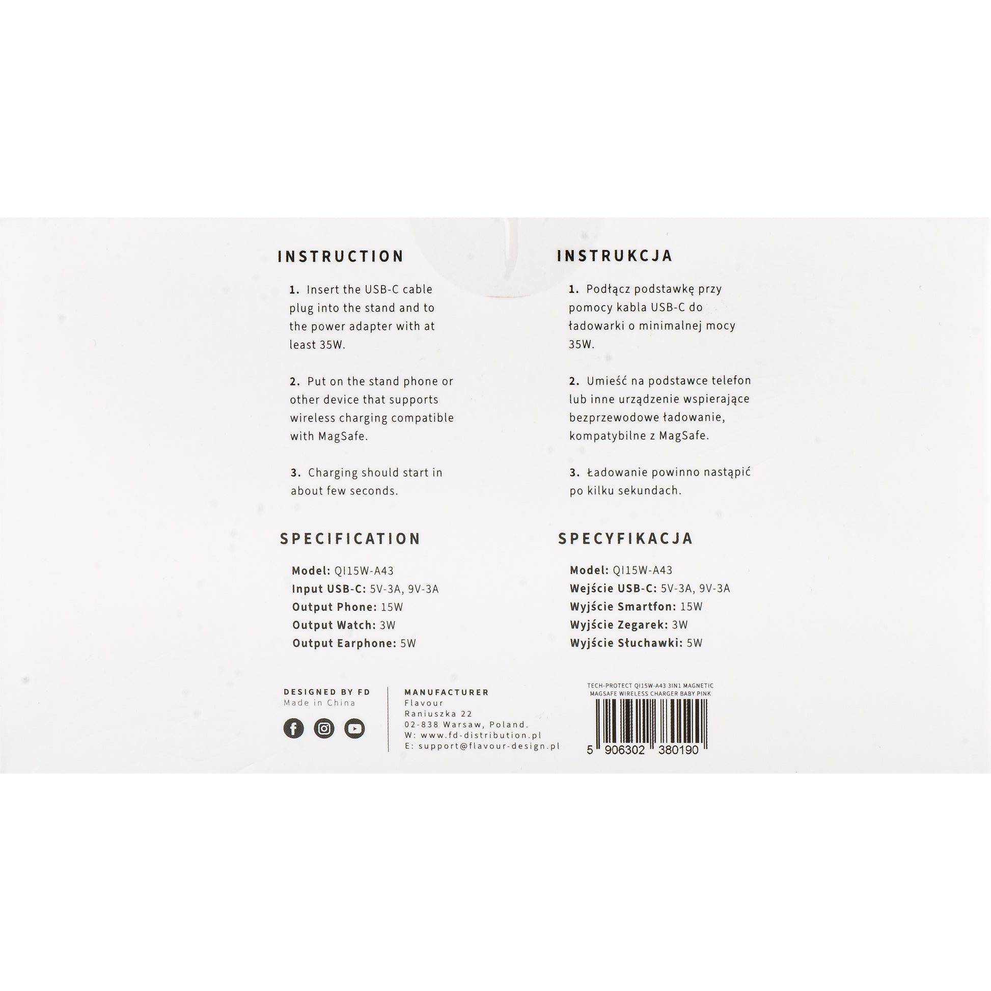 - 1 x Trådlös Nätverksladdare Tech-Protect QI15W-A43 3in1